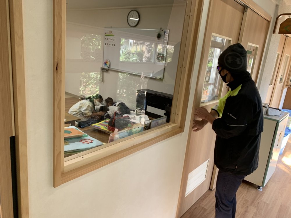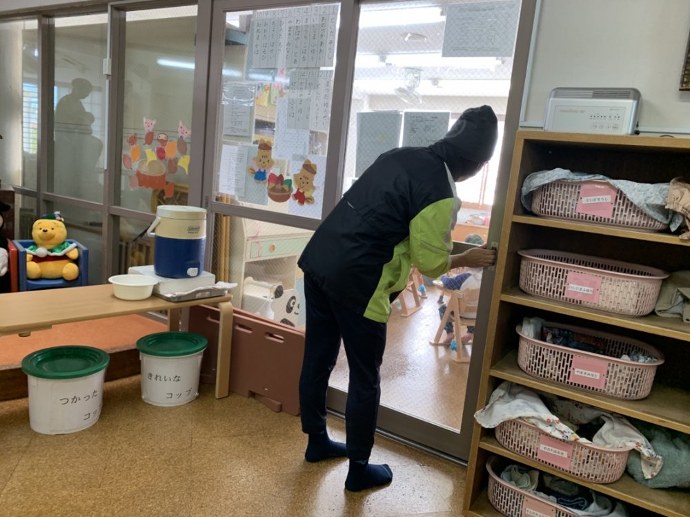 乳児室の子どもたちも泣き出さずに落ち着いて、訓練に参加できました。